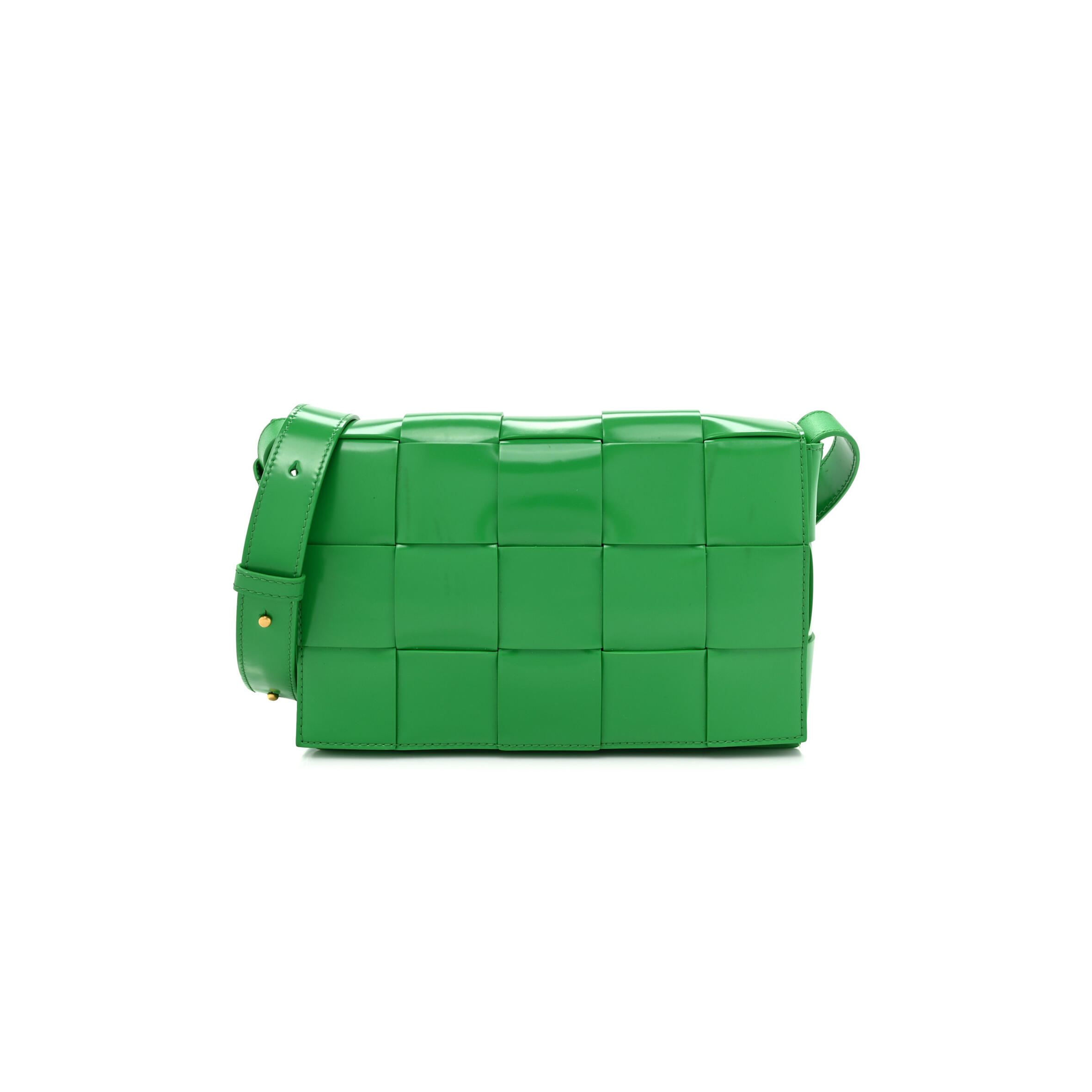 B0tt*ga Ven*ta PATENT MAXI INTRECCIATO CASSETTE CROSSBODY BAG PARAKEET (23*15*5.5cm) Master Quality