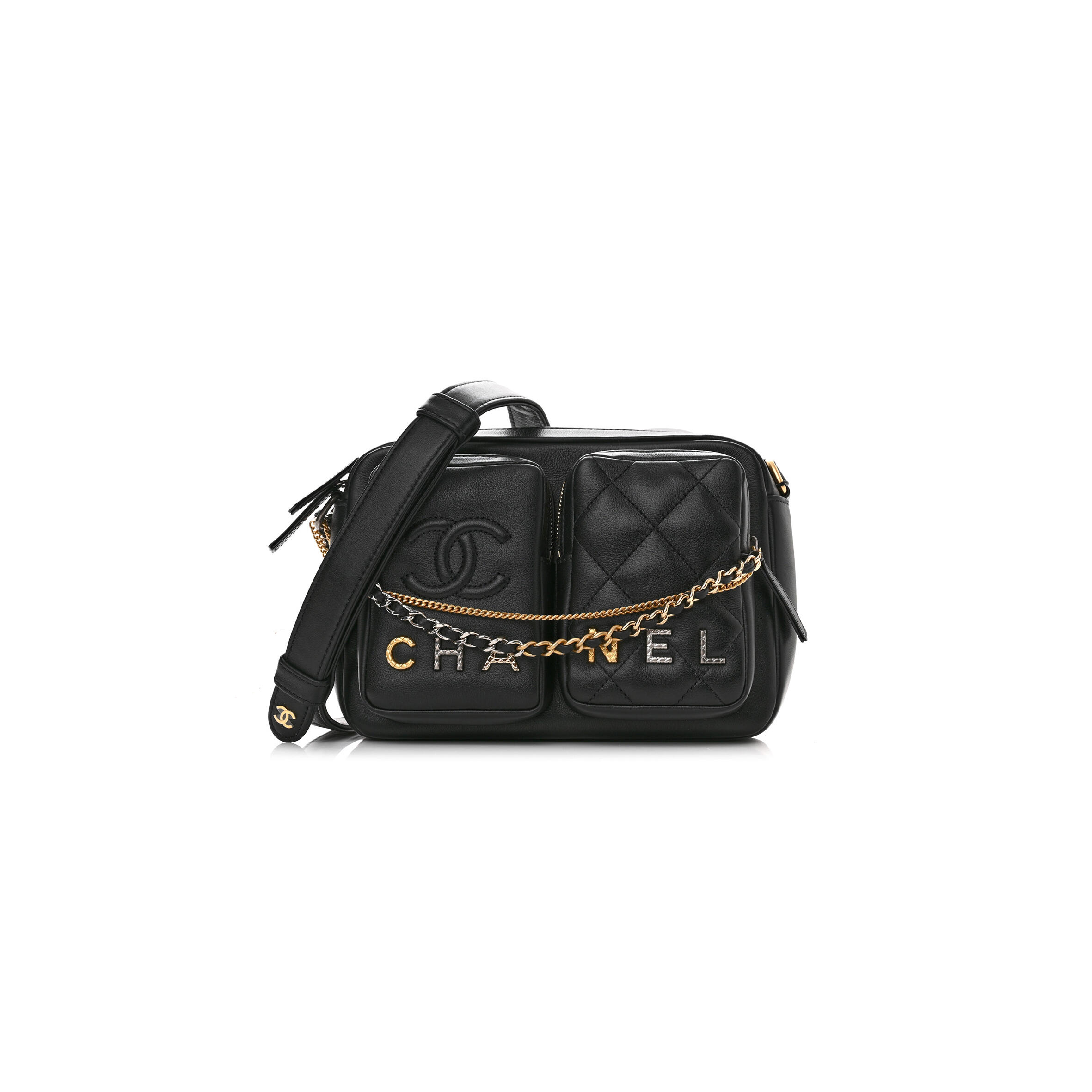 Ch**el CALFSKIN QUILTED SMALL CAMERA CASE BLACK AS2933 (20.5*14.5*9cm) Master Quality