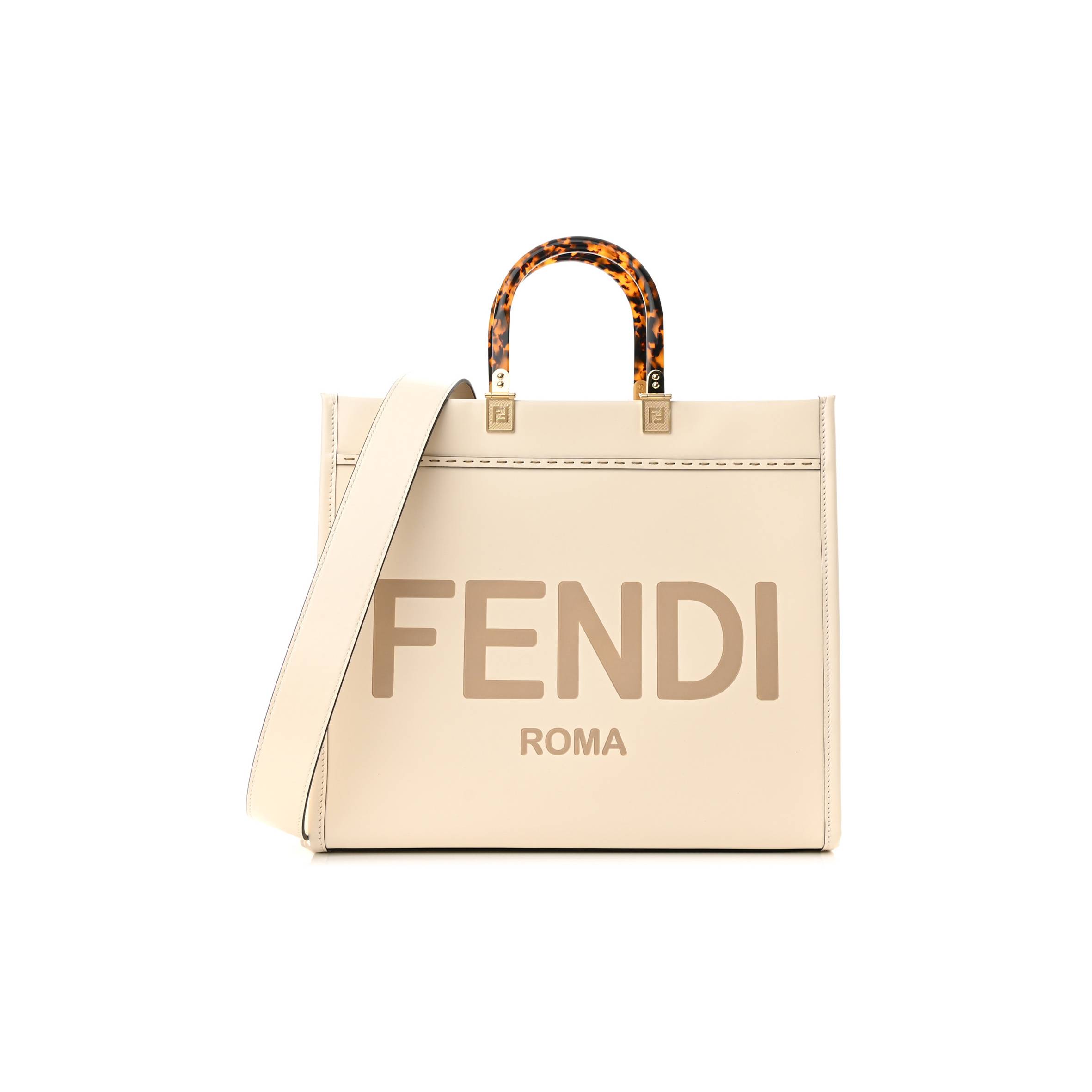 F**di VITELLO KING PLEXIGLASS MEDIUM F**di SUNSHINE SHOPPER TOTE WHITE ICE (36*30*15cm) Master Quality